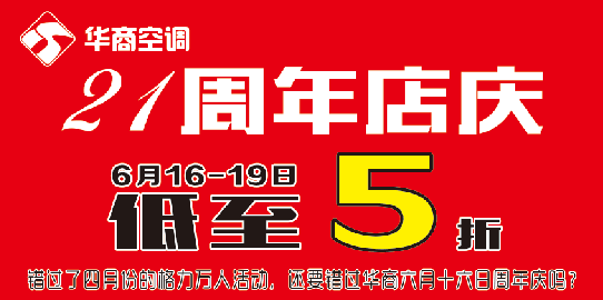 華商空調(diào)瘋了、6月16日21周年店慶、全場(chǎng)低至5折啦!