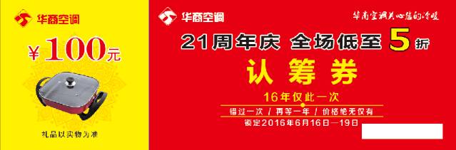 來(lái) 華商空調(diào),6月16日-19日憑券進(jìn)店購(gòu)買;